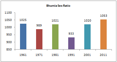 Other Distinct Socio-Cultural Features : The term Bhumia is associated with the word bhumi, meaning land. The Bhumia live in separate hamlets in hetrogenous villages. The tribe is divided into two groups: Bada and Sano, each of which is again divided into a number of exogamous totemistic septs (Bansa), such as, Bagh (tiger), Nag (cobra), Cheli (goat), and Surya (sun), etc. Ordinarily families of one bansa reside in a village. There are separate hamlets for different bansas. In most cases they maintain monogamy. Marriage by negotiation is regarded as ideal. Bride price is paid either in cash or in kind, in the form of food grains, goat and mahua liquor. Acquiring mates by elopement, exchange and capture is in vogue. Remarriage of divorcee, widow and widower as well as junior levirate, sororate and cross cousin marriages are also prevalent in their society. The Bhumia usually practise cremation for the dead but burial is done for unnatural deaths and dead children. Death pollution is observed for ten days. In their religious beliefs and practices they are more inclined towards Caste Hinduism with traces of tribal religious practices. Budhi Thakurani seated in a thatched roof at the centre of every Bhumia village is their village deity who is worshipped on all important occasions. Besides, they worship other village deities like Nisani, Mauli and Ran Devata. The Naik is their traditional village headman and Bhatanaik is the regional head. At the village level, Pujari, Dissari are sacred specialists and Challan acts as the village messenger. Matters concerning village feuds, intra and inter community disputes are settled in the regional council. During freedom struggle the involvement of the Bhumia community under the leadership of Martyr Laxman Naik bears testimony to their ethnic solidarity and prowess. They are very fond of dance and music.